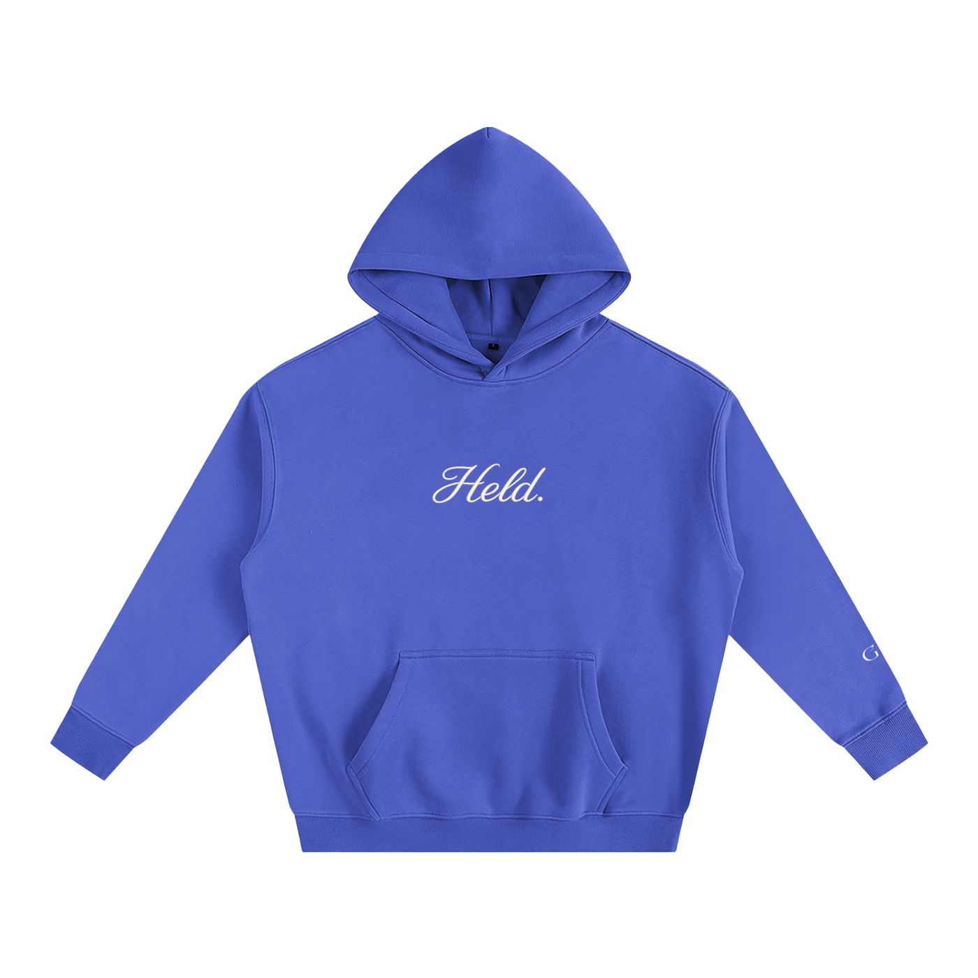 Heavyweight and unhurried — a thick 350 g/m² cotton-poly blend with a drop shoulder and loose fit that settles around you the way it should. The "Held." embroidery sits quietly on the chest. Tone-on-tone. Present without announcing itself.